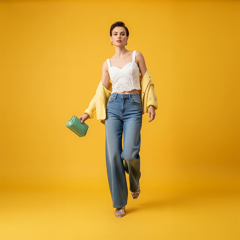 Embrace the vibrant energy of the new season. "Luminous Horizons" is an ode to effortless confidence, balancing structured tailoring with fluid ease in a palette saturated with Mediterranean blues, citrus yellows, and crisp whites.