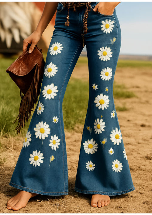 Women’s High-Waist Washed Wide-Leg Jeans – Casual Bootcut Denim Pants -
